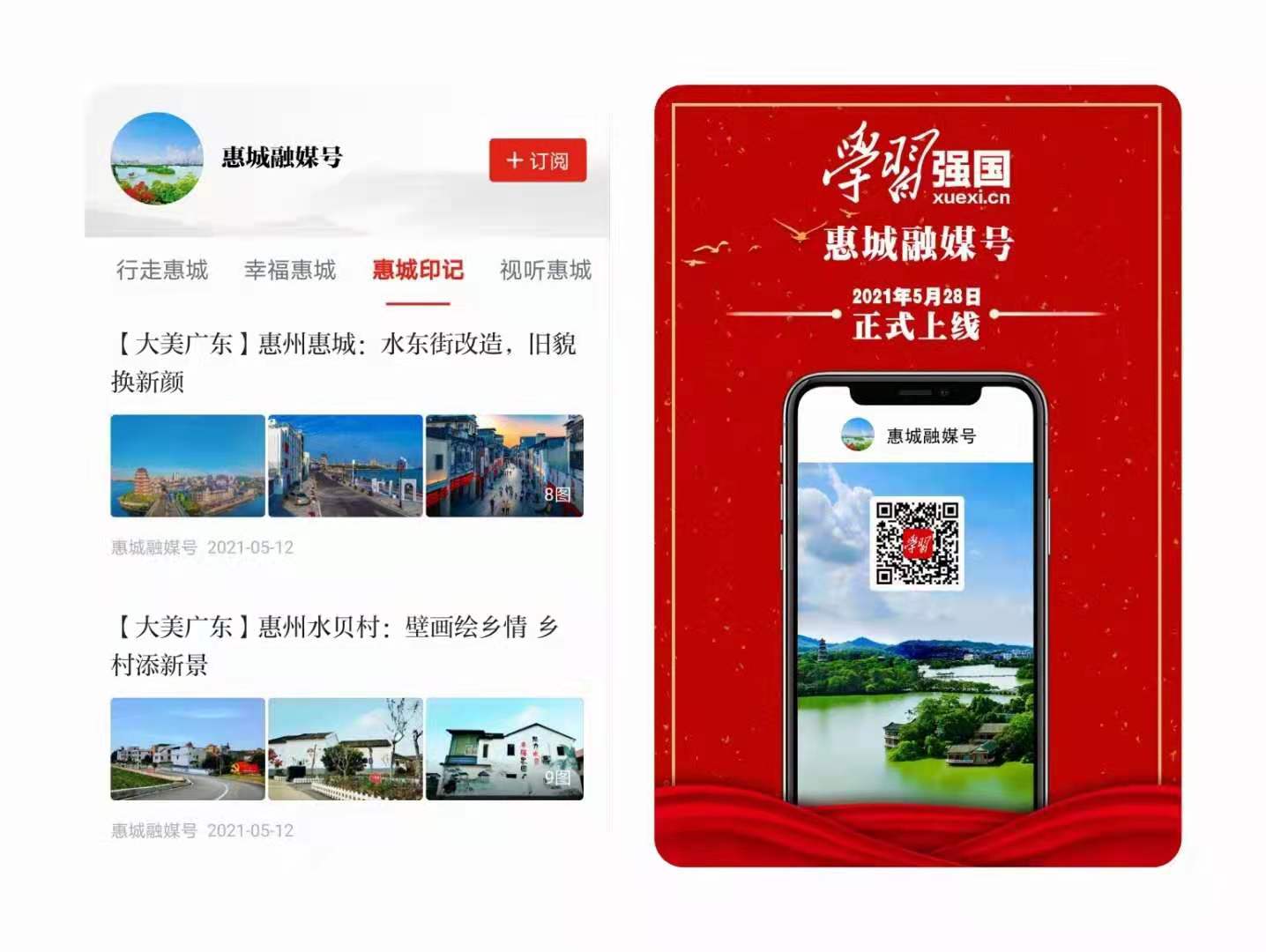 “学习强国”惠城融媒号设有“新思想在惠城”“行走惠城”“幸福惠城”“惠城印记”“视听惠城”等5个栏目,以图文、视频、图集、音频等多种形式,全方位展现惠城经济、政治、文化、社会、生态文明建设等方面工作动态和优质资源,为惠城积极融入“双区”、提升城市首位度、全力建设宜居宜业宜游中心区营造舆论强势、注入强大力量。